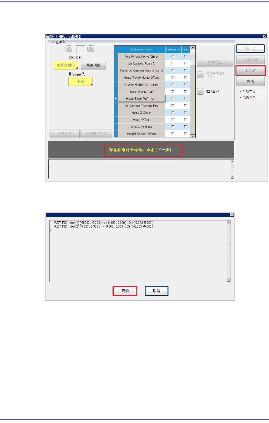 12-92 Cutting-edge Modular Mounter HM Series A dministrator's Guide 12.1.9.9. Head Block Ref.Mark Calibration (HSH, MFH) 该校准作业能够识别基准标记 (Reference Mark) 后准确地测量元件扫描 位置。 备注 可自动对 Head Calibration 的所有项目进 行 Calibration 。 …
