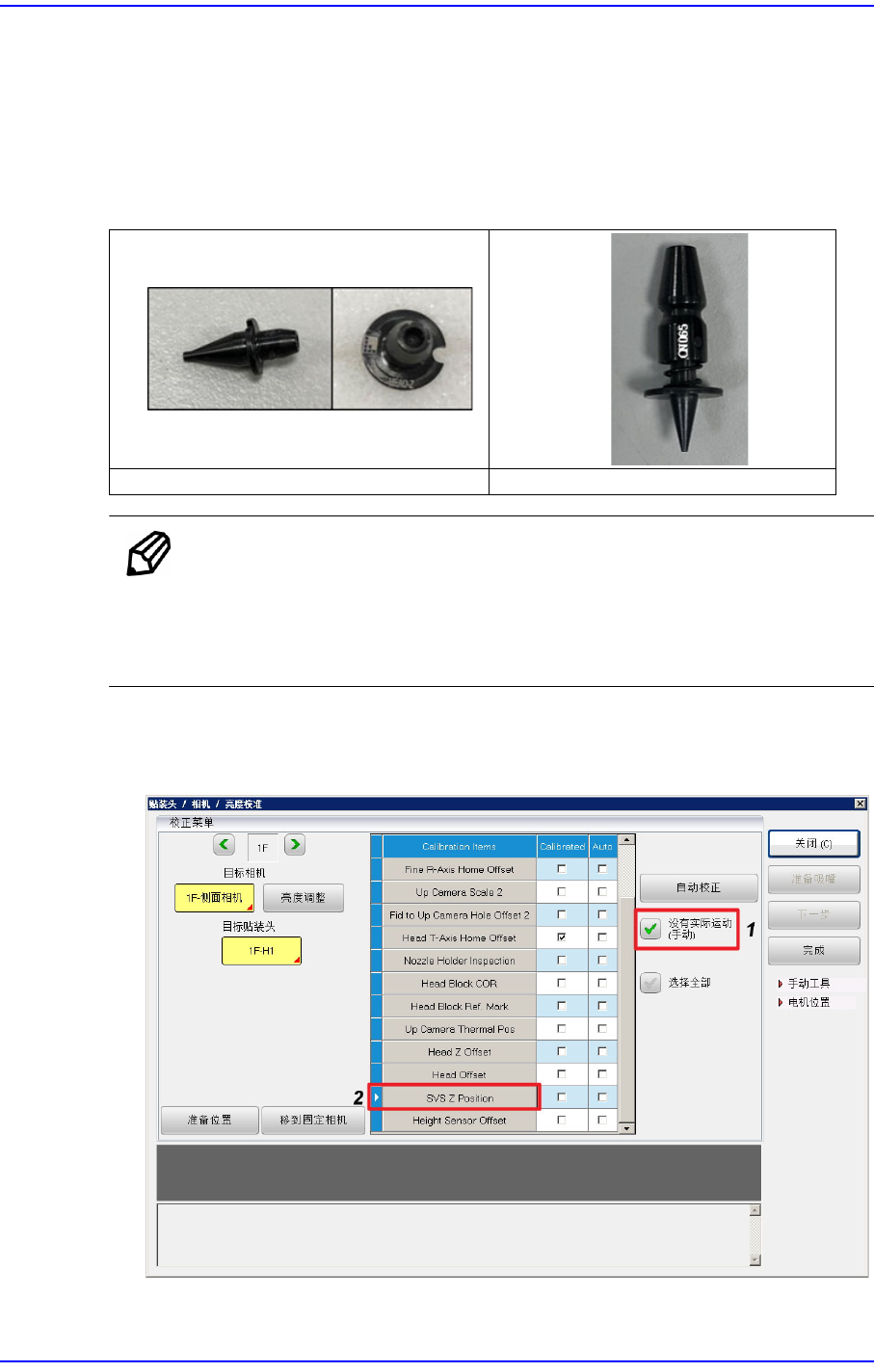 1. 选择<没有实际运动 (手动)>复选框后,按下<SVS Z Position>按钮。