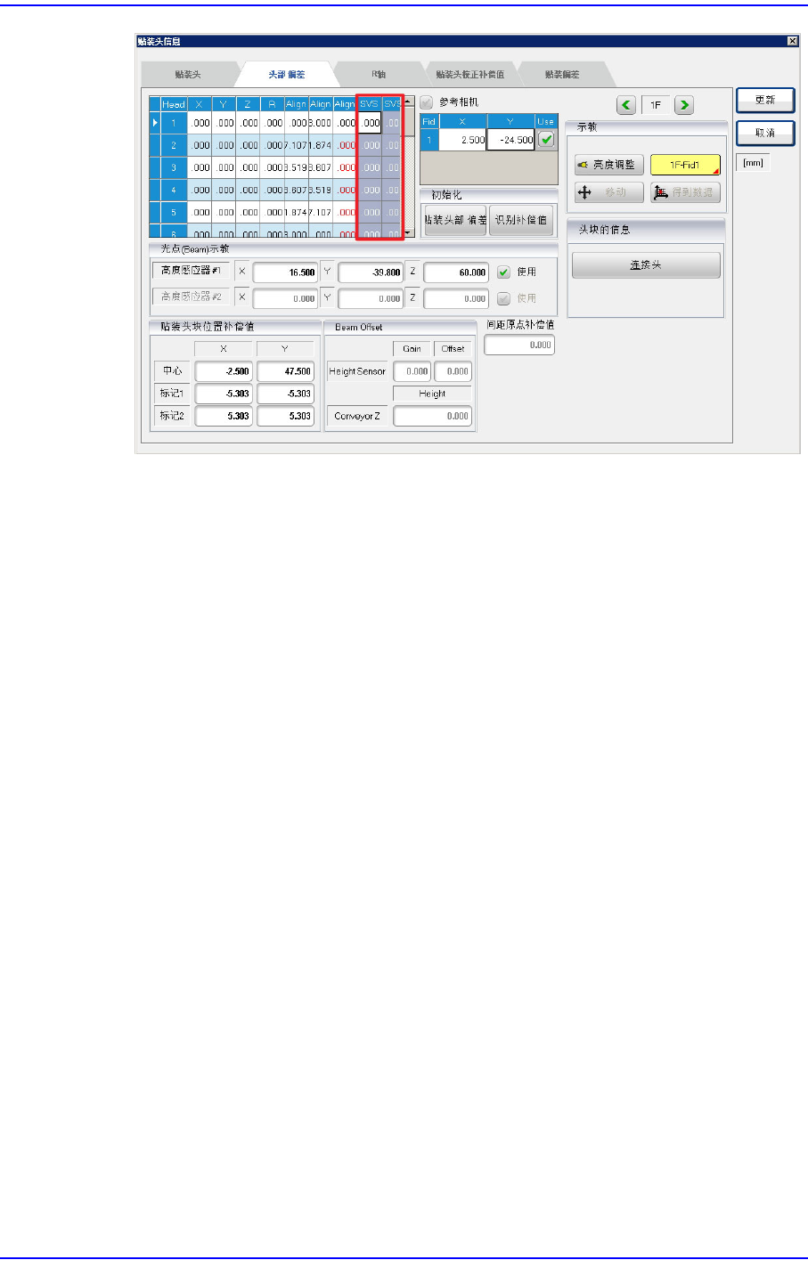 存的贴装头的偏移(Offset)。