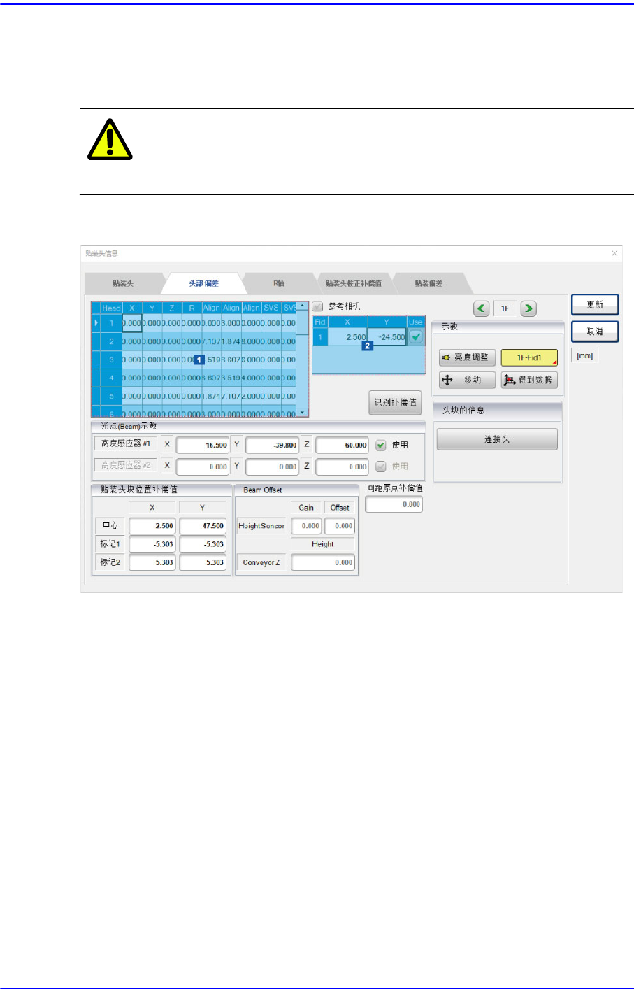 注 意 实际各贴装头在进行贴装时会适用补偿值后贴装,因此更改已设