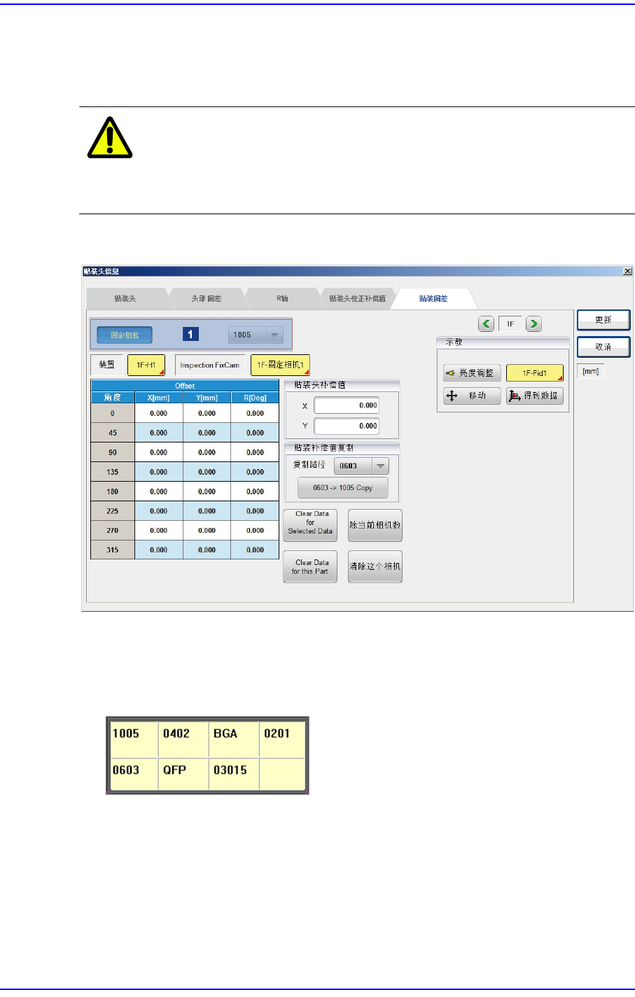 注 意 实际各贴装头在进行贴装时会适用补偿值后贴装。一般来说,更