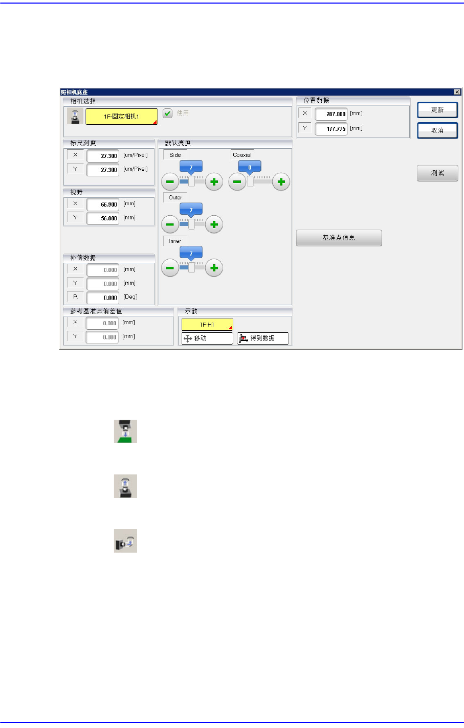 用于将基准摄像机移动到指定的坐标位置,或者获取当前坐标。
