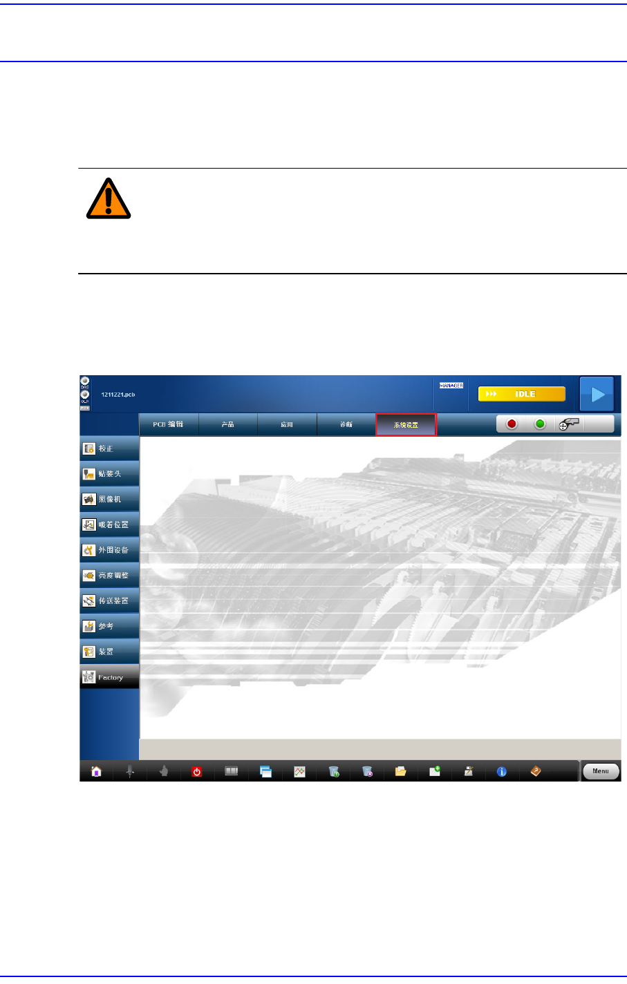 本菜单里的项目在设备出货时已被设定完毕。除了因设备维护而需要重新设置的情
