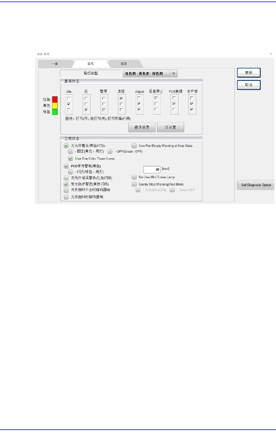 设置与设备状态对应的信号灯亮灯状态。 选择此按钮时显示如下的画面。