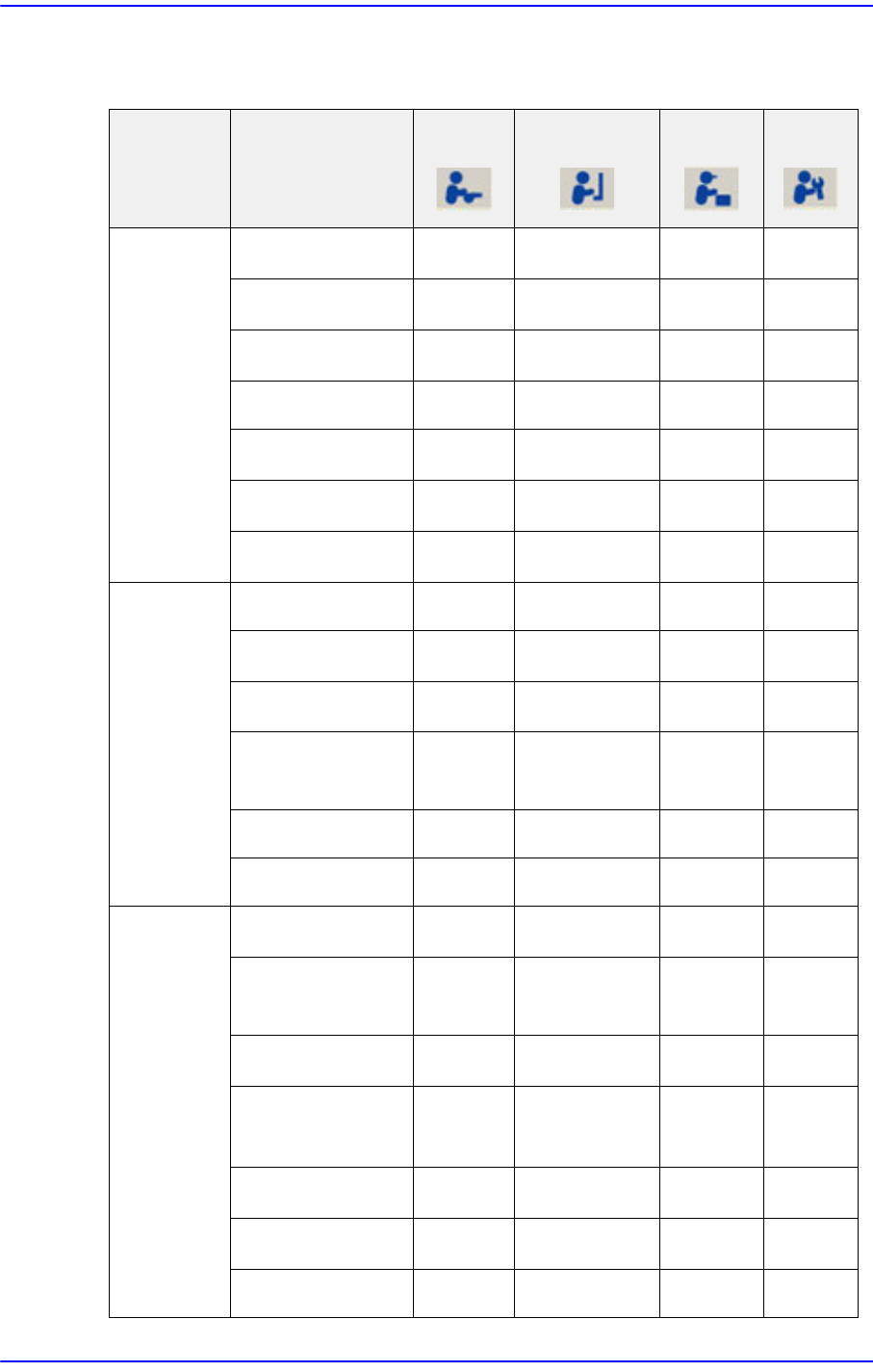 以下是列出不同用户接近MMI 菜单权限的表格。