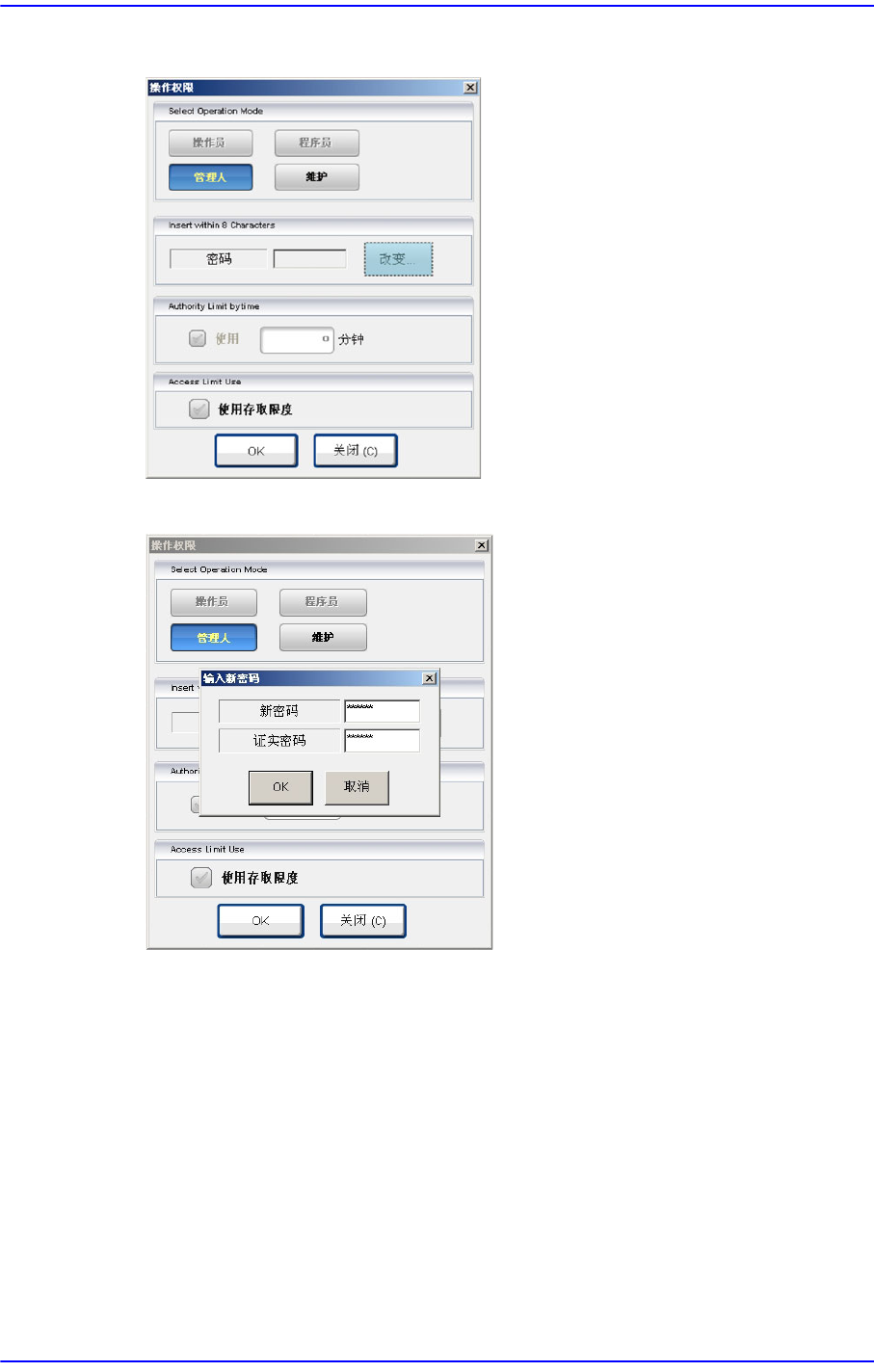 注 意 请勿与其他用户共享程序员方式及管理员方式的密码。 由于程