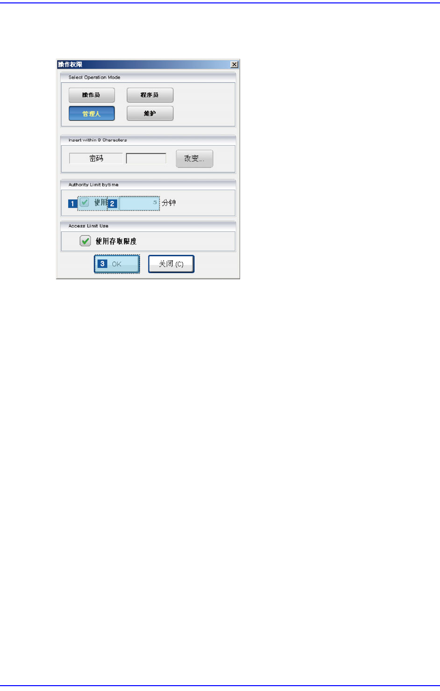 经过设定的时间后用户权限自动转换成操作员。