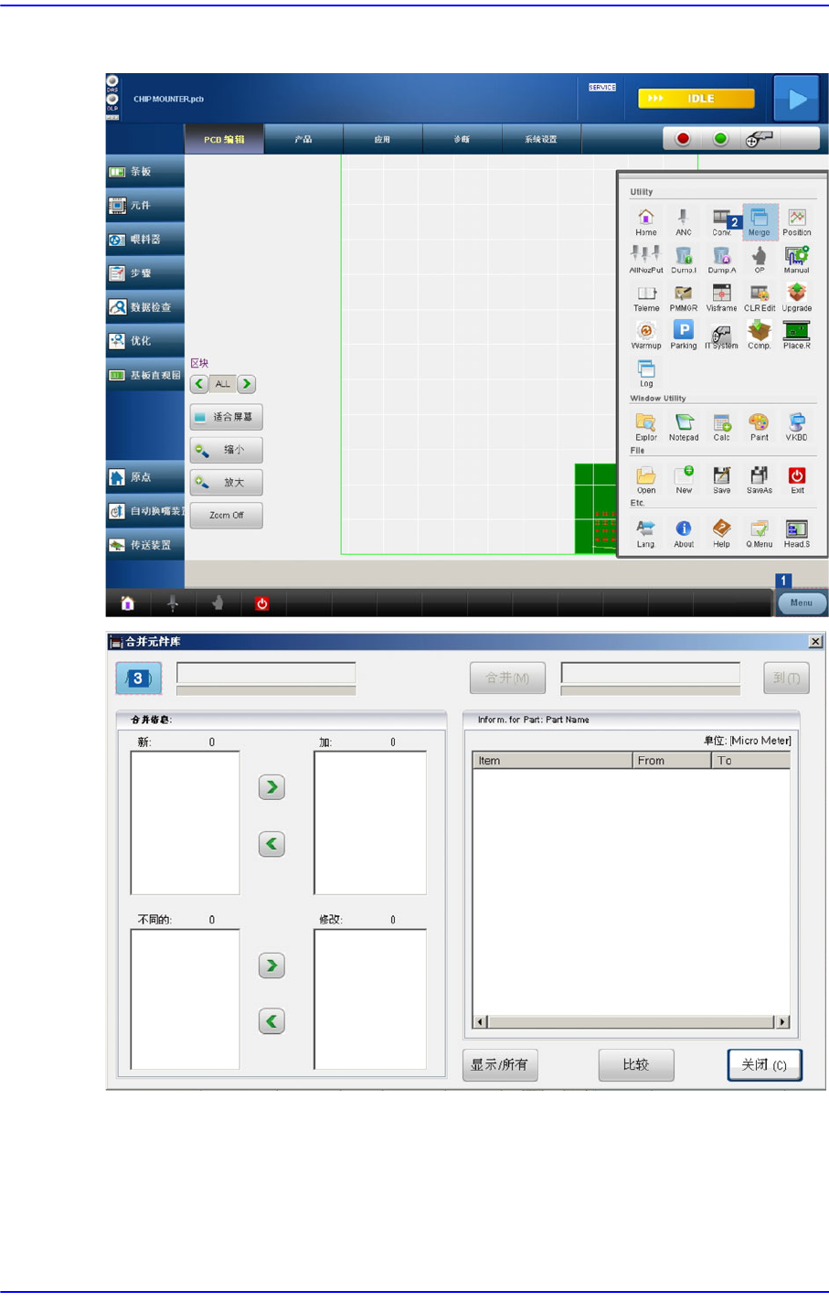 在〈 新:〉目 录 框 或〈不同的:〉目录框选择要合并的部件名