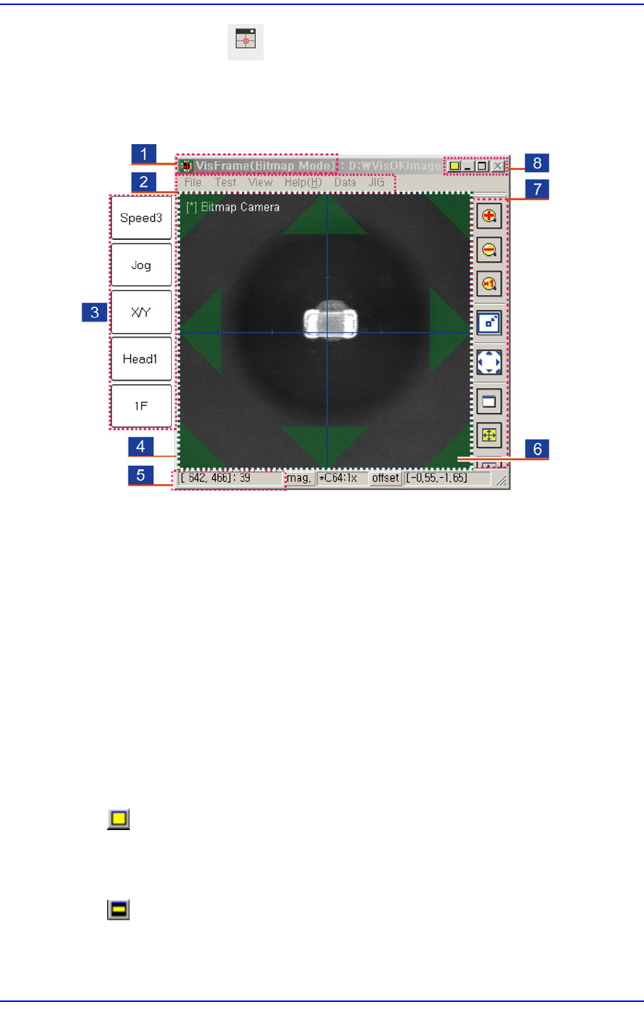 15-24 Cutting-edge Modular Mounter HM Series A dministrator's Guide Vi s i o n 最小化 Vi s i o n 最大化 15.1.13.1.3. 标题栏 (Toolbar) 扩大形象。 缩小形象。 实际大小显示形象。 15.1.13.1.4. 菜单 (Menu) 15.1.13.1.4.1.File Bitmap Save… 文…