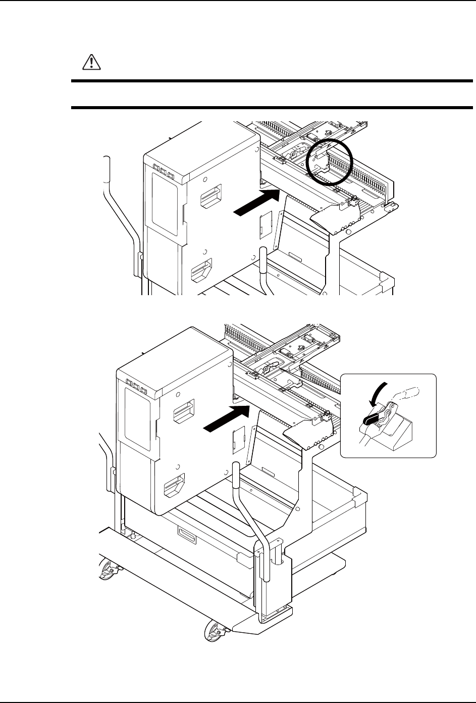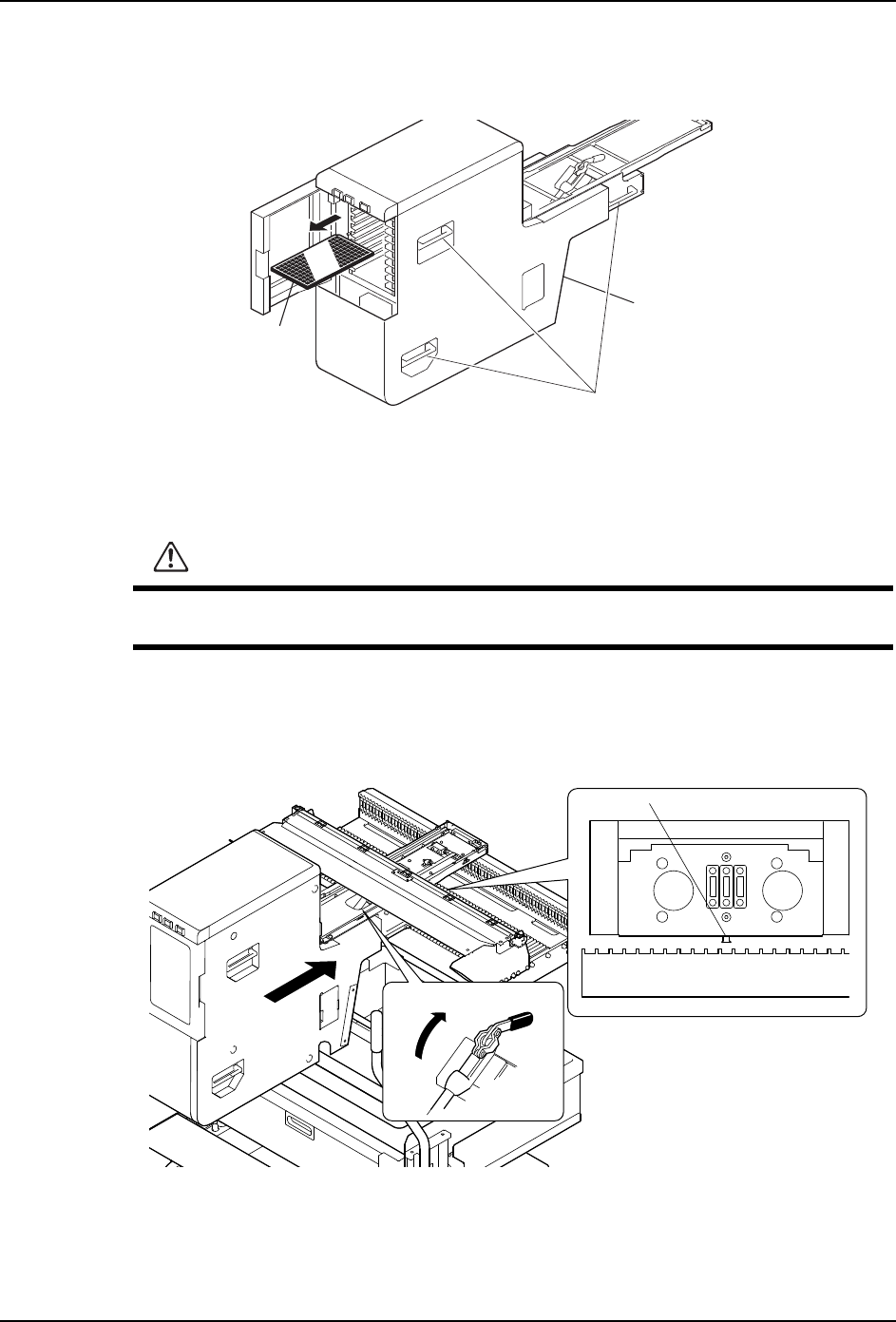 请不要随意将手伸入料盘单元 -M 和料站托架组件之间,以免夹伤手指。