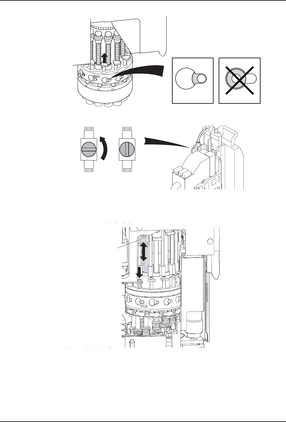 10.如果是 V12 型工作头,请转动 R 轴使需要清洁的升降杆转到图示位置。请在该位置上下