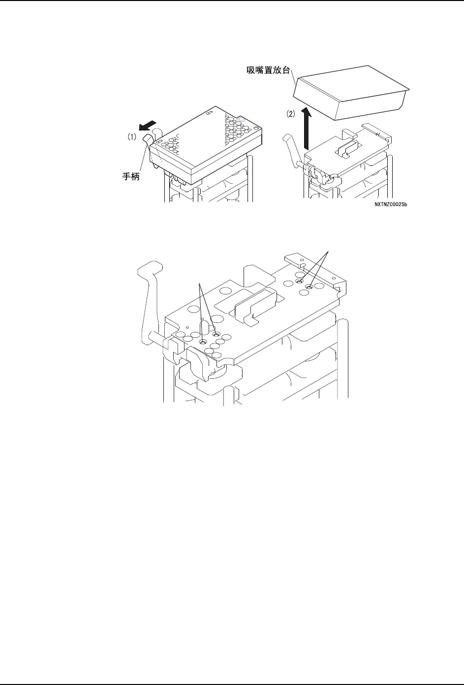 2. 请拆除吸嘴置放台。(关于详细内容请参考 「4.3 拆除 / 安装吸嘴置放台」)