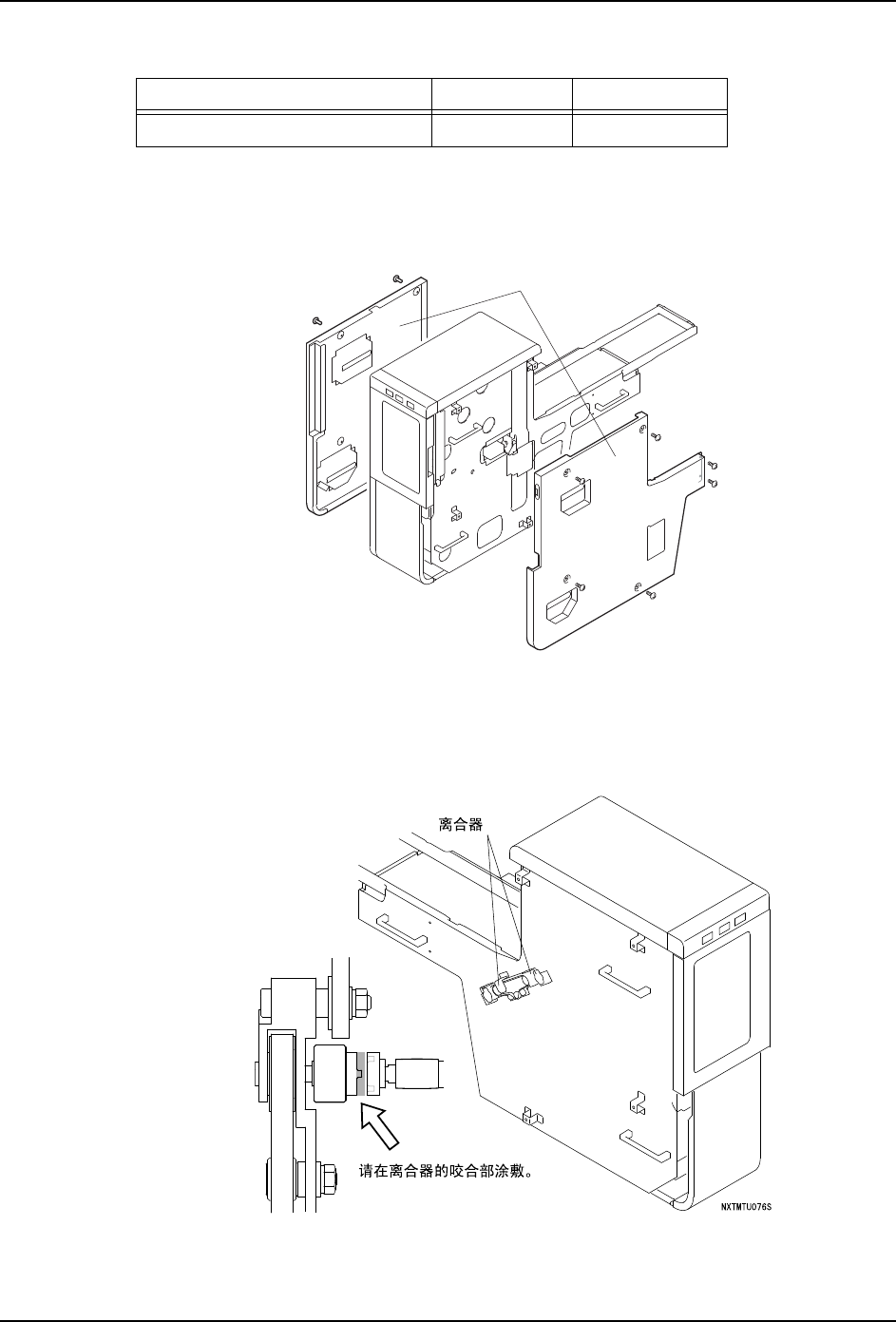 5. 保养 MEC-AIMEX2S-011S0 198 AIMEX IIS 机械手册 5.10.16 检查 · 更 换料盘单元 -LTW 料盘托架的背面胶片 检查料盘托架背面胶片 1. 请事先准备需要检查的料盘托架 。 2. 胶片贴在料盘托架背面。如果胶 片表面有剥落、破损等情况发生则请 换新。 3. 请检查全部料盘托架。 更换料盘托架背面胶片 如果胶片表面有剥落、破 损等情况发生则请换新 1. 请将料盘托架背面朝上并撕掉原 有胶片。 …