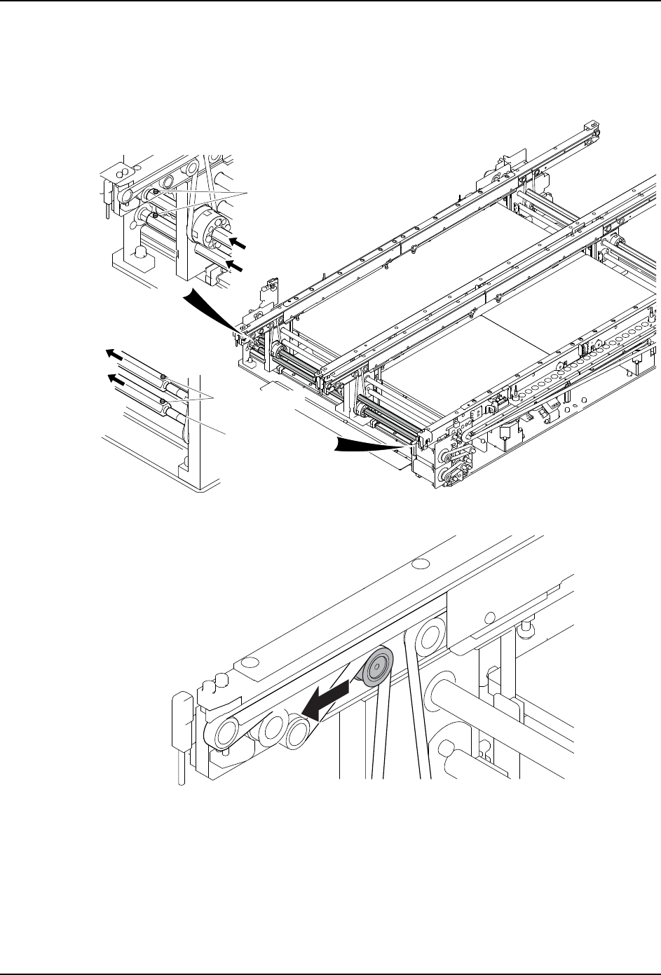 备注 )在这里只说明如何更换轨道左侧的皮带 (左右两侧的皮带的更换方法相同)。