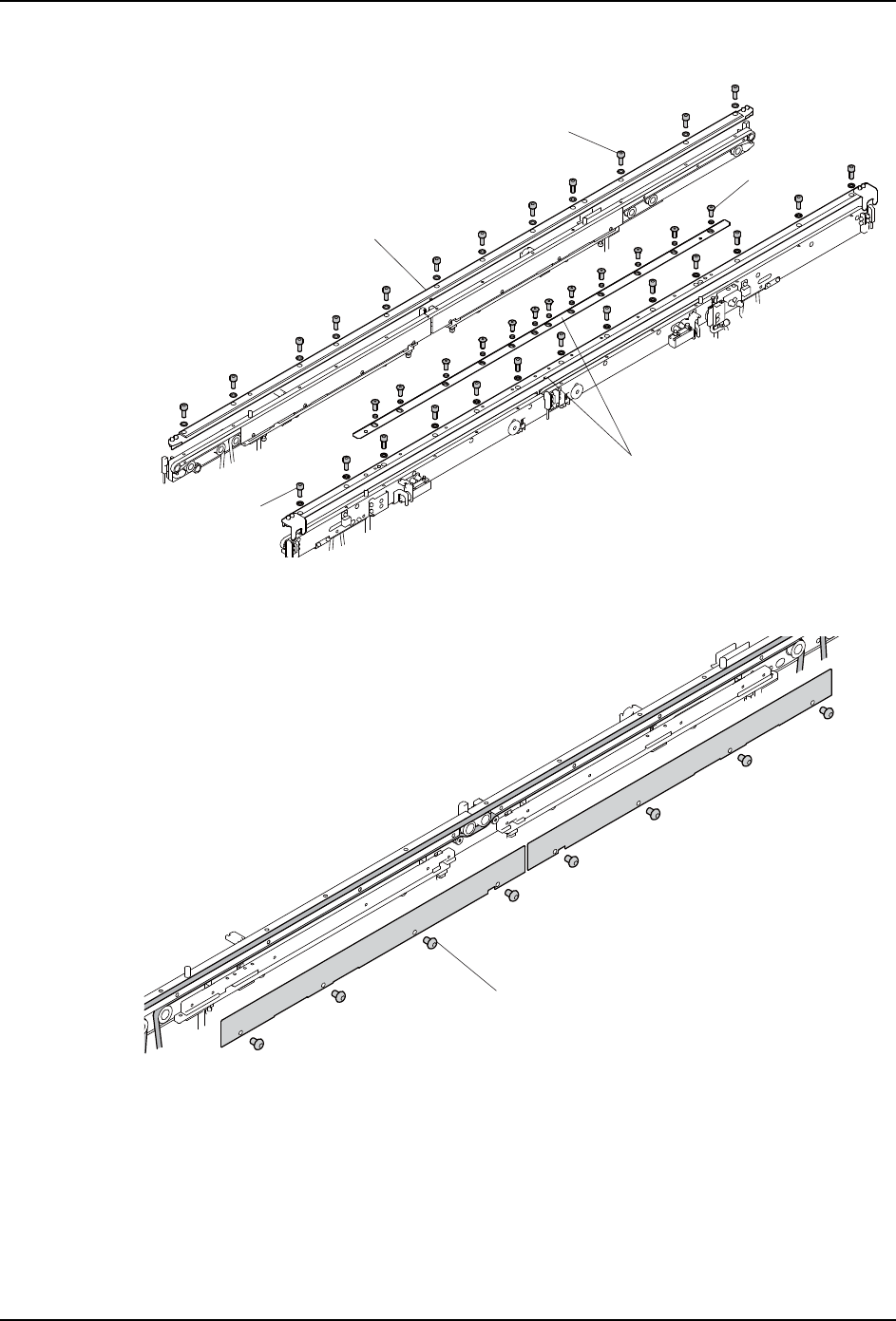4. 请拧松前后共计 4 根轨道 1 和轨道 2 的六角轴定位螺栓。