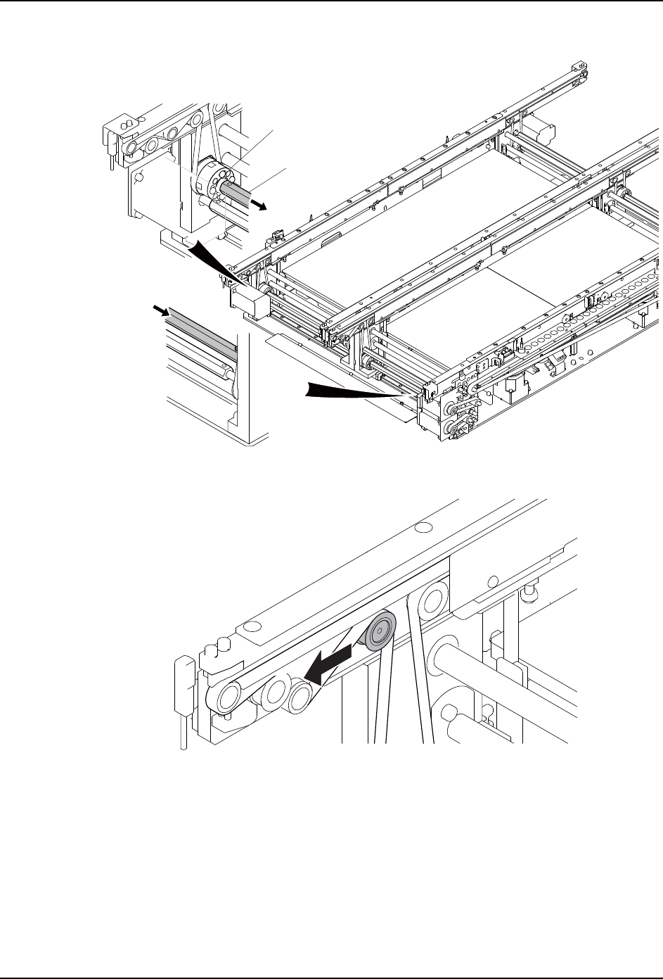 17.请拆除夹板后再更换皮带。更换后请调节皮带张力。( 请参考 「5.10.12 检查搬运轨道