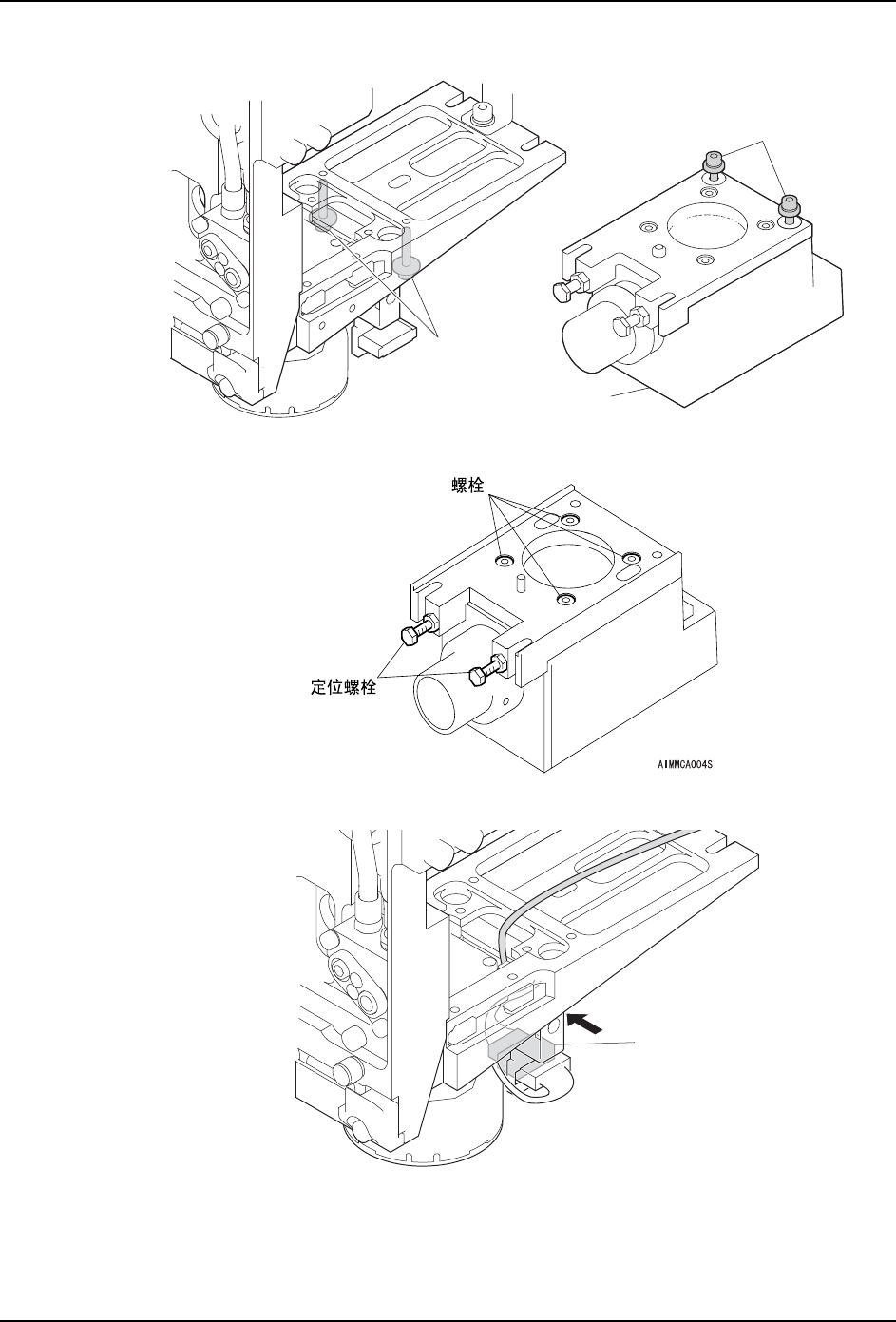 注意 )请绝对不要拧松相机单元上的螺栓和定位螺栓。(请参考下图。)