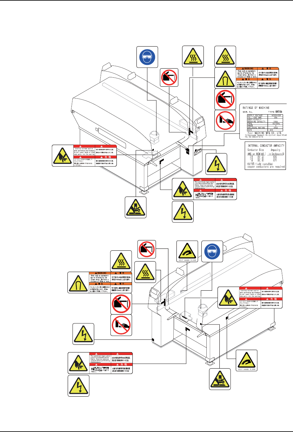 为了唤起使用机器时的安全意识,在机器的图示位置上粘贴了安全标签。