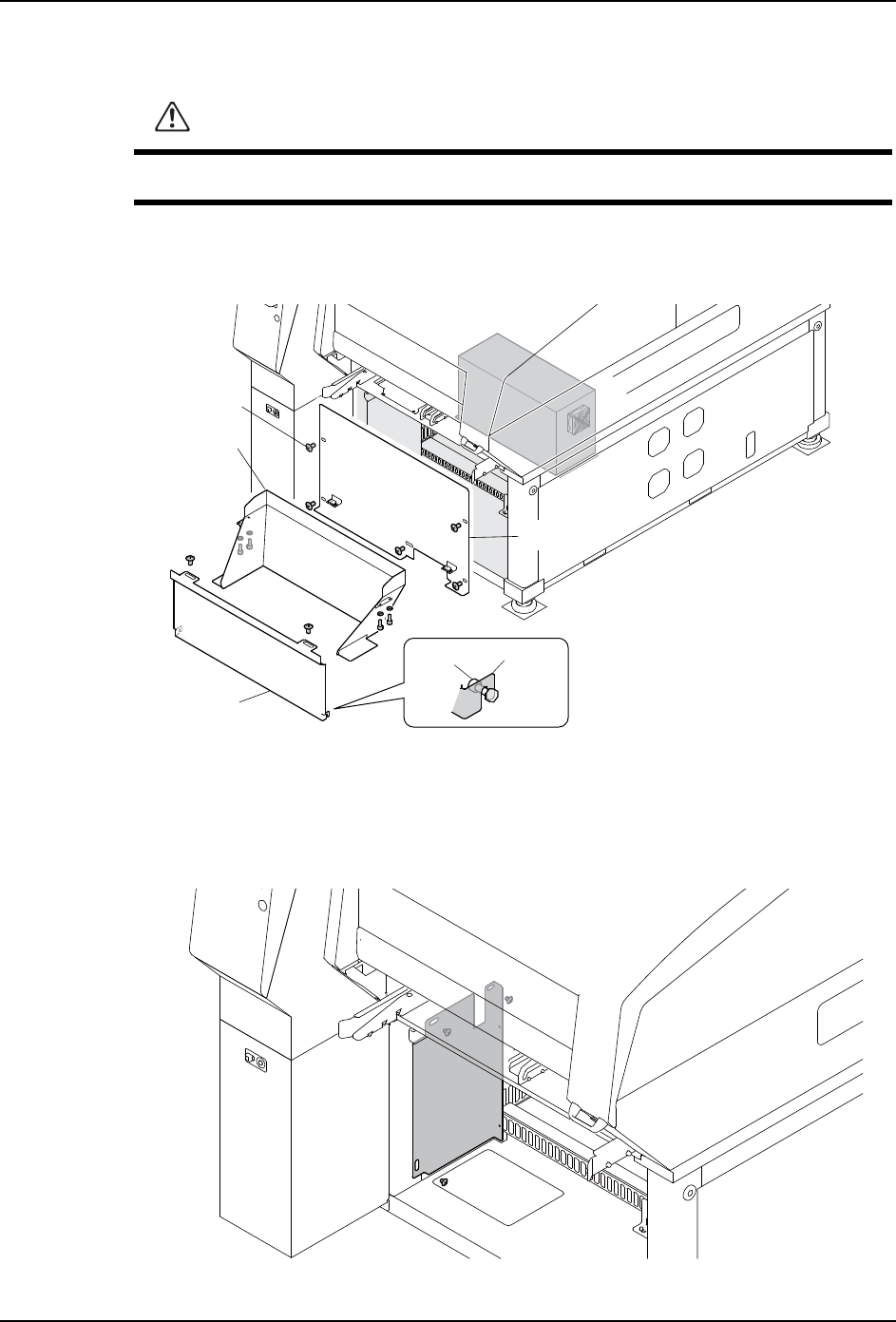 3. 请拆除 2 根螺栓后拿掉料站盖板 (下)。由于盖板下方的挂钩挂在螺栓上,所以请一边
