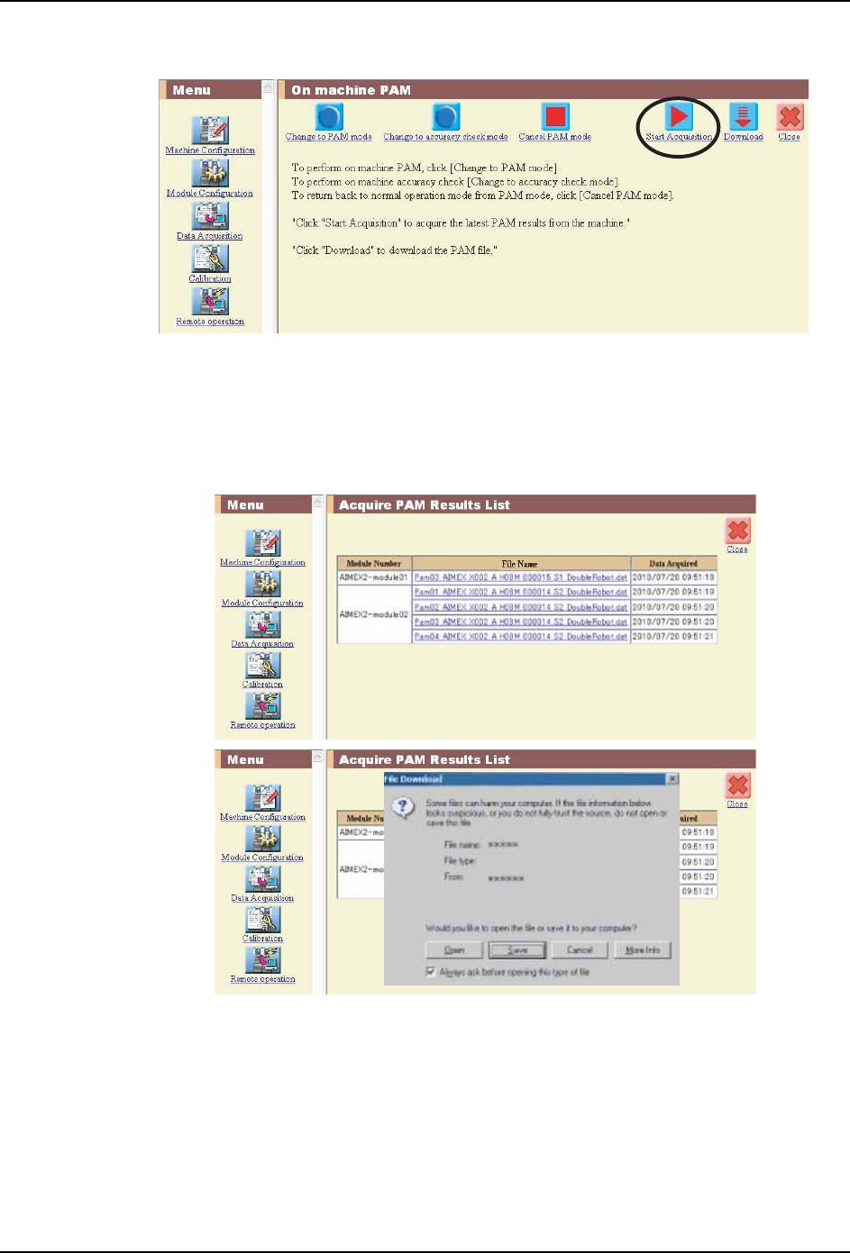 2. 请先通过机器设定画面确认是否已选择需获取 PAM 测定结果的模组,然后再选择 「远程