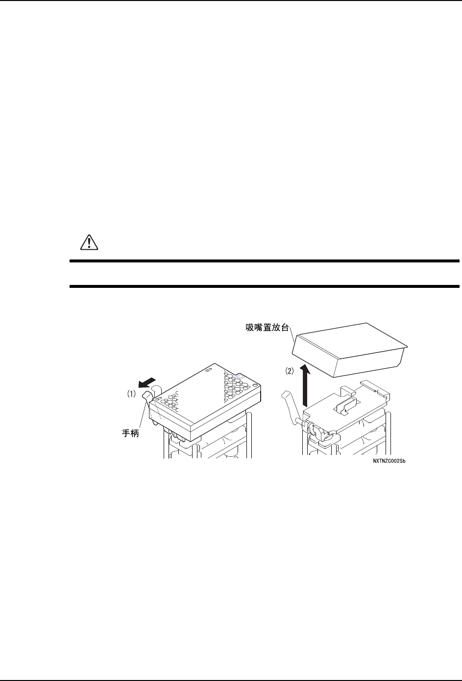 6. 先向前扳吸嘴置放台左侧的拉杆,然后上提吸嘴置放台前端部分即完成拆卸。