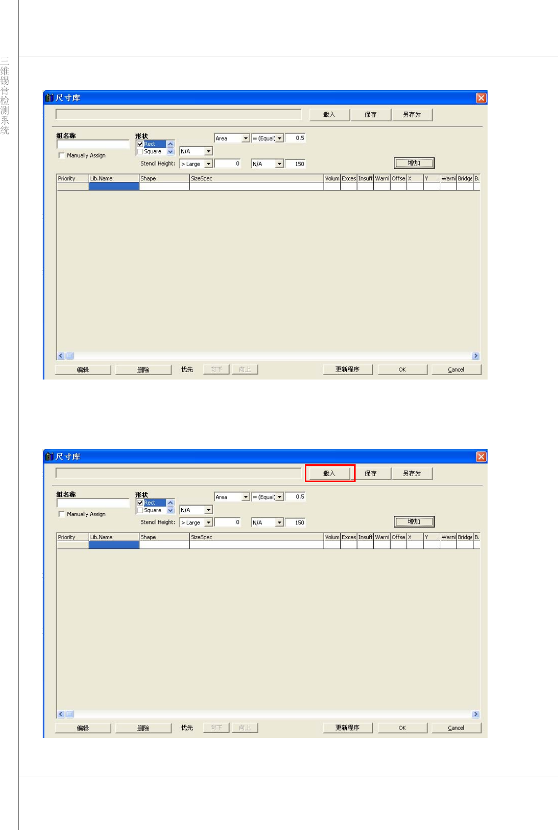 单击“LO AD”(载入)按钮,在 PC 或网络中选择库文件。如果用户要创建新库,请输入新的库文件
