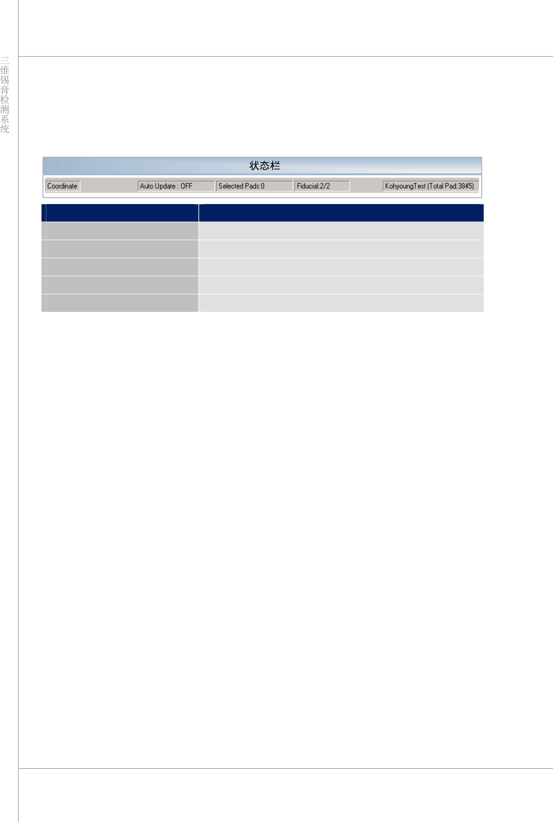 32 | 第 3 章 CEditor TM 版本 1.2 K OH Y OUNG T ECHNOLOGY I NC . 2.4. 状态栏 位于屏幕底部的状态栏显示焊盘信息,例如,焊盘数量、焊盘位置和在 CEditor™ 中的文件名。 项 说明 “ Coordinate ”(坐标 ) 坐标:显示选定焊盘上的各种信息。 “ Auto Update ”(自动更新) 显示尺寸库自动更新的 打开 / 关闭状态。 “ Selected …