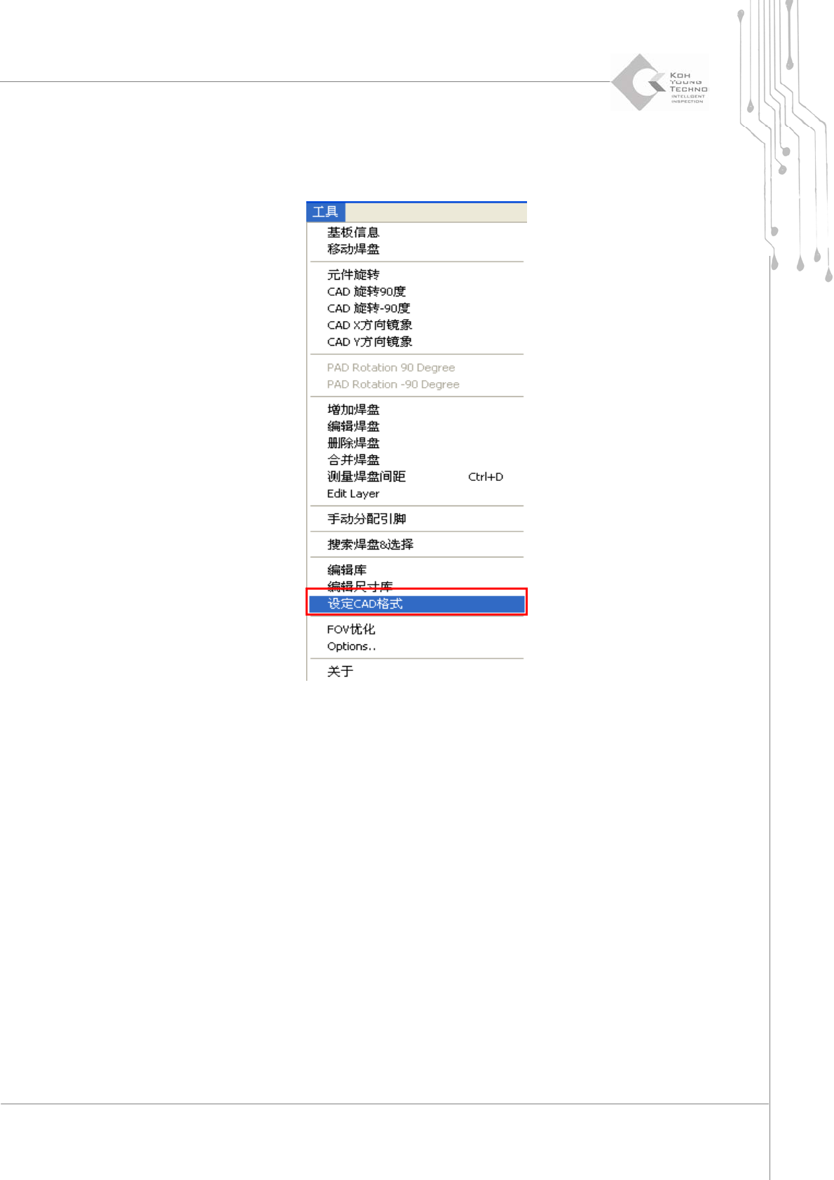 1) 最初载入 CAD 或 Pin CAD 文件时,在“Tools”(工具)菜单中选择“Set CAD Format”
