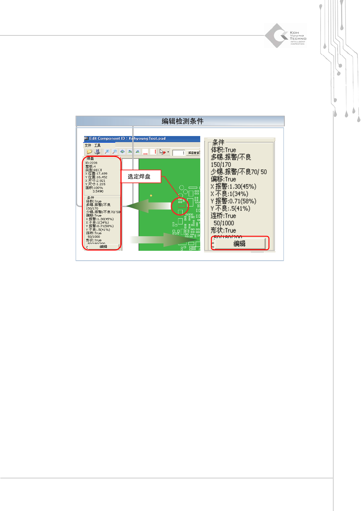 选择要更改其检测条件的焊盘,然后在工作空间内单击“Edit”(编辑)按钮。此时,将激活“Change