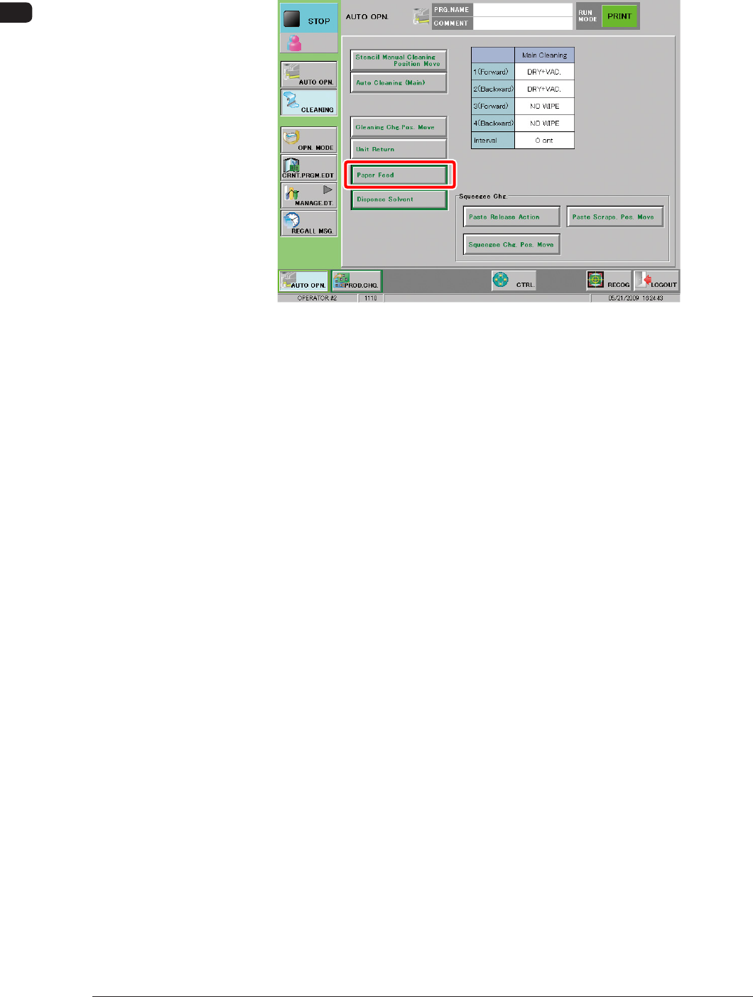 (11) Press the [Paper Feed (take-up)] button in the "CLEANING" window and