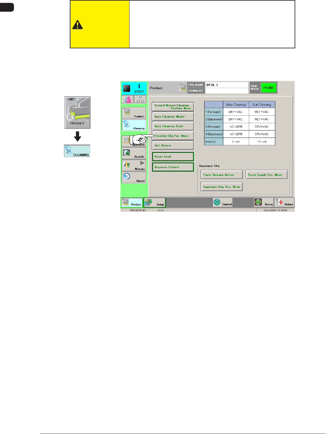 (1) Press the [Cleaning Chg. Pos. Move] button in the "CLEANING" window.
