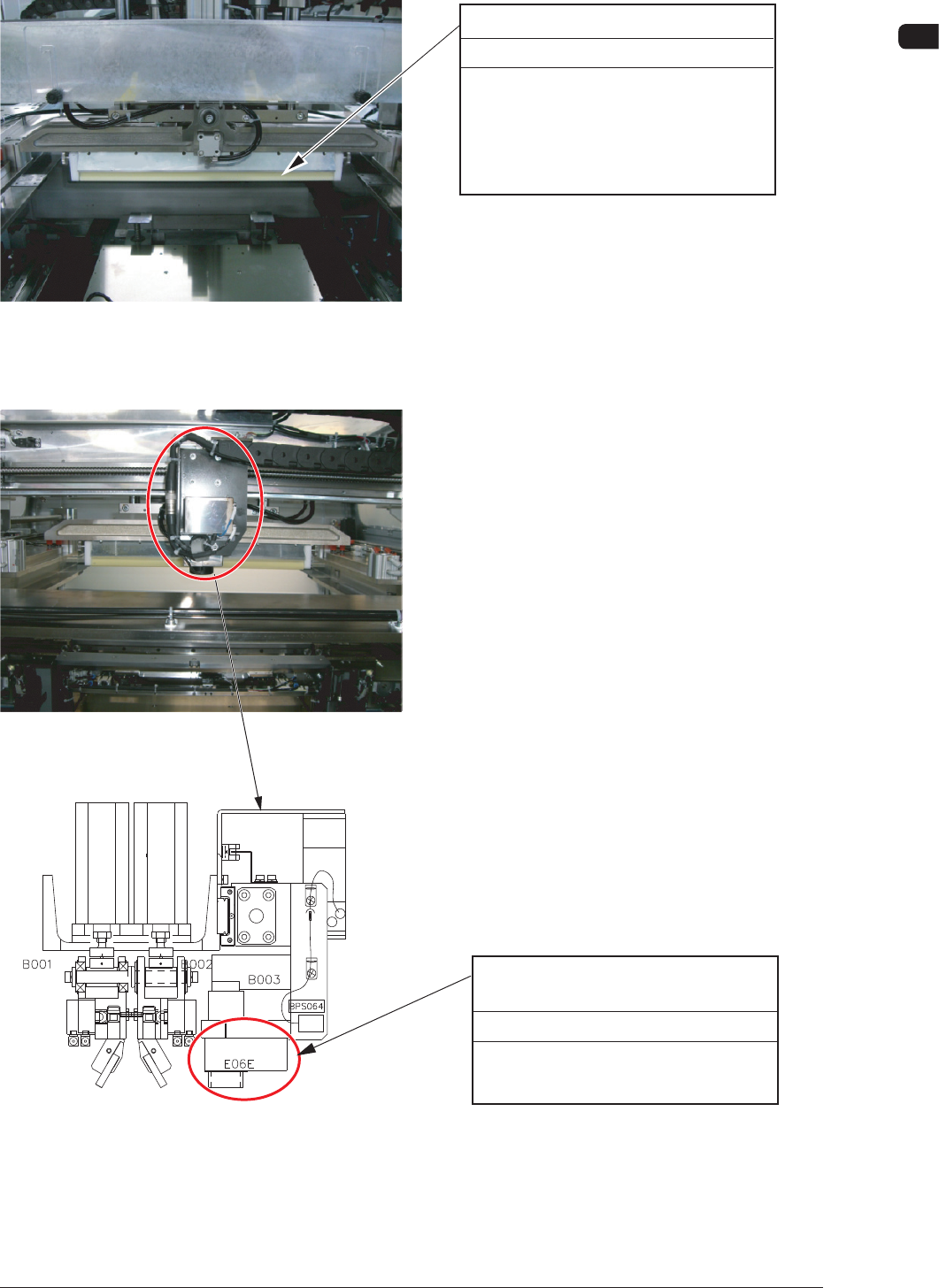 4OM-1505 1-19 3. Maintenance Spots : Chap.1 3.2.2 Squeegee Head Section Squeegee Every Day Cleaning Clean the squeegees with a rag soaked in industrial alcohol (solvent) or directly with industrial alcohol (solvent). Rem…