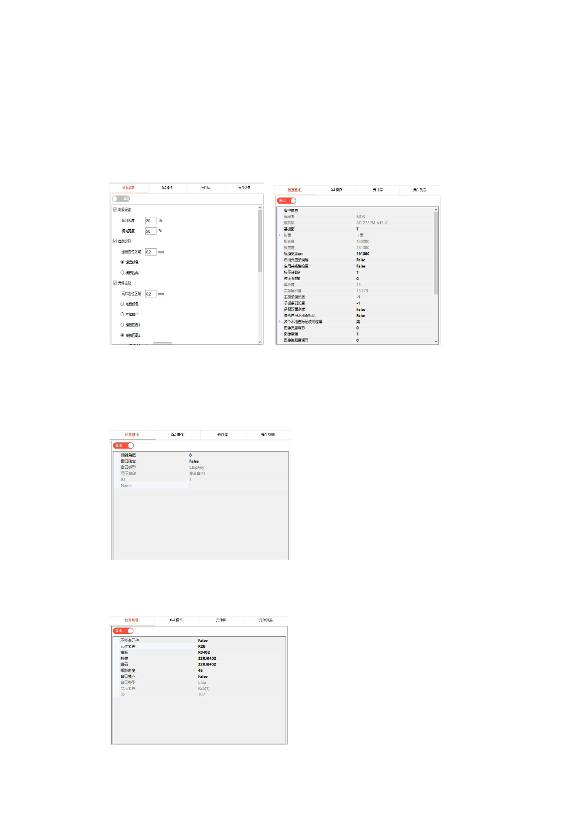 板框的检查参数设置项或者属性窗口、元件有检查参数和属性,默认显示检查参数设置,点击切