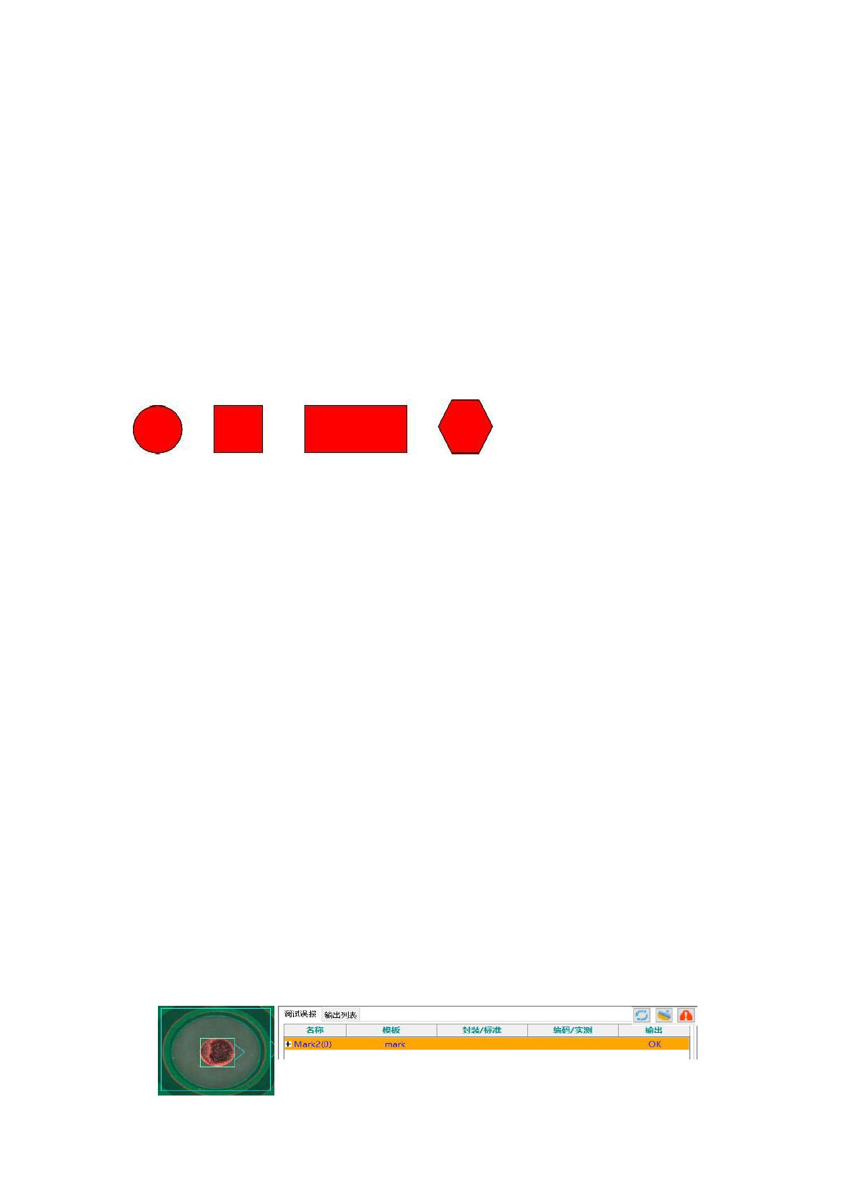 D、形状检查:当勾选形状检查时,可选择圆形检查或方形检查,计算抽取的 MARK 颜