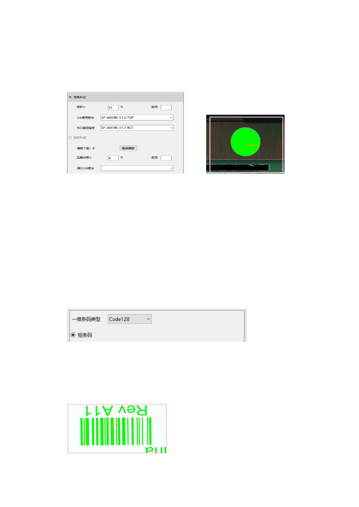 色和形状最接近所选择的形状检查,形状相似度大于等于设定值,判定为 OK,小于设定值,