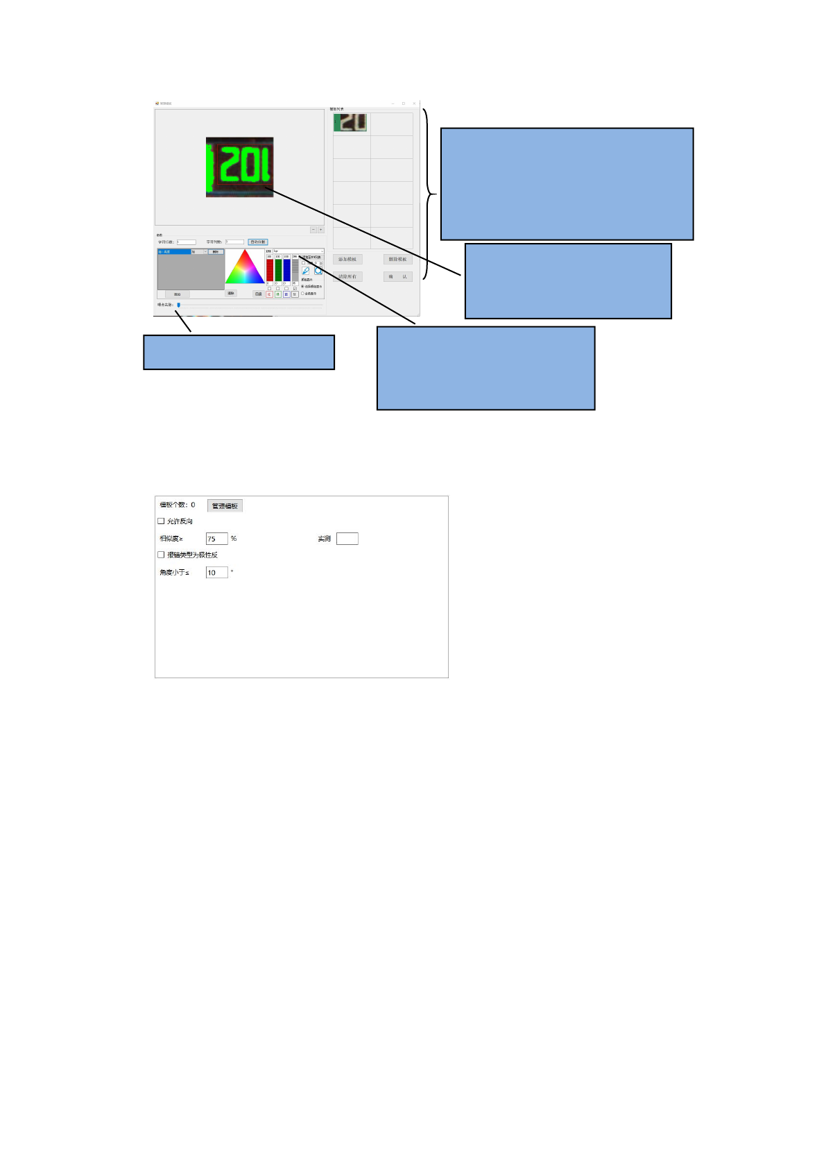 第 35 页 共 79 页 在搜索区域 内, 抽取对象颜色登录模板 , 所抽取的对象 颜色相似度 大于设定值, 则 OK。 报错类型: 可以在列表内 选择报错类型 跟随向量: 集合窗口 可以选择跟随本体 、 跟随焊盘的抽 出定位补正 , 也可以选择不跟随 4.6 跳转窗 1、选择“跳转 窗”可以添加 多个其它窗口 2、组合逻辑 :组合逻辑可 以用“+” 、 “*” ,和虚焊的组 合逻辑算法一 样 3、错误报错 类型:可以在 列表里选择报…