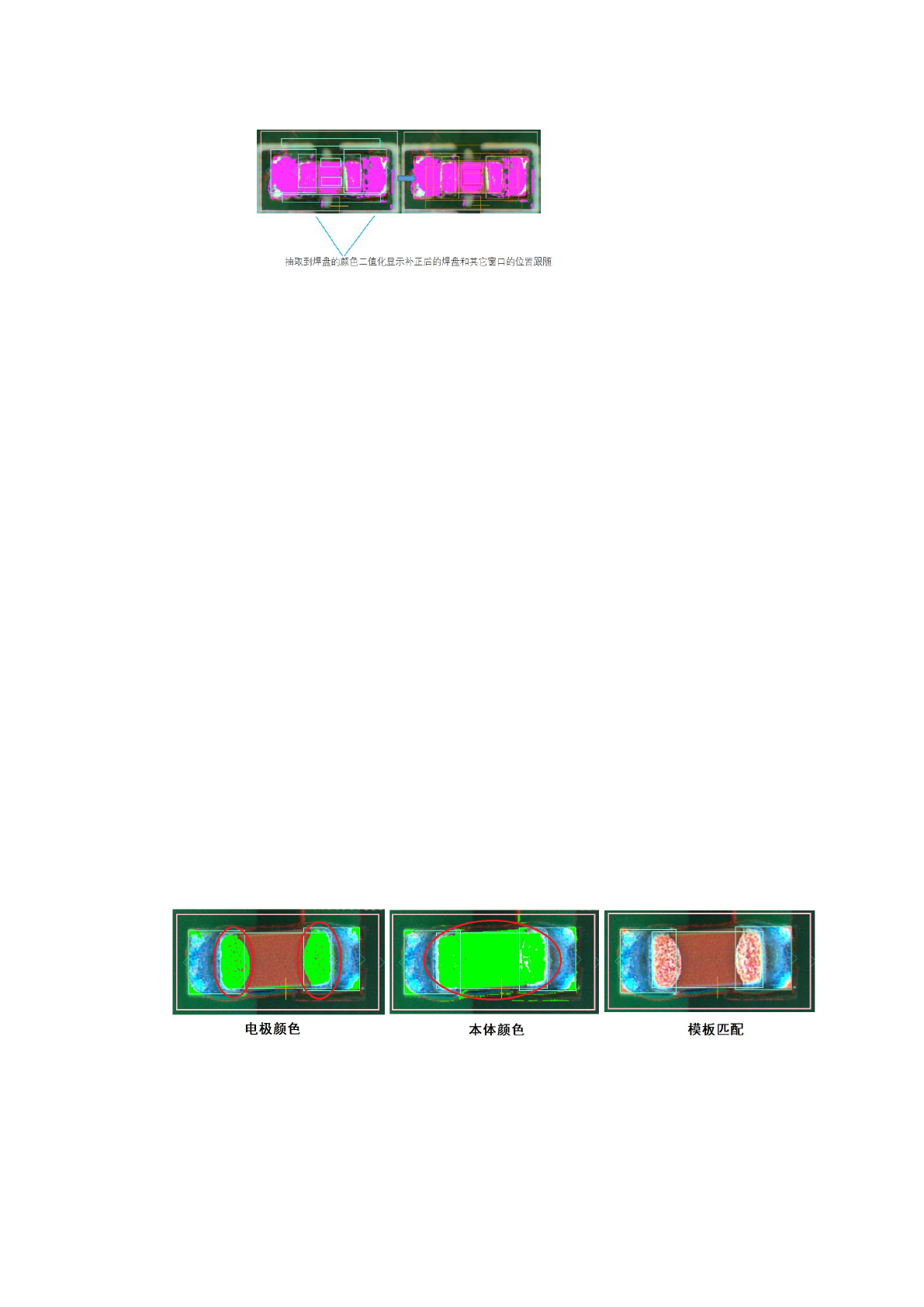 抽取到焊盘的颜色二值化显示补正后的焊盘和其它窗口的位置跟随