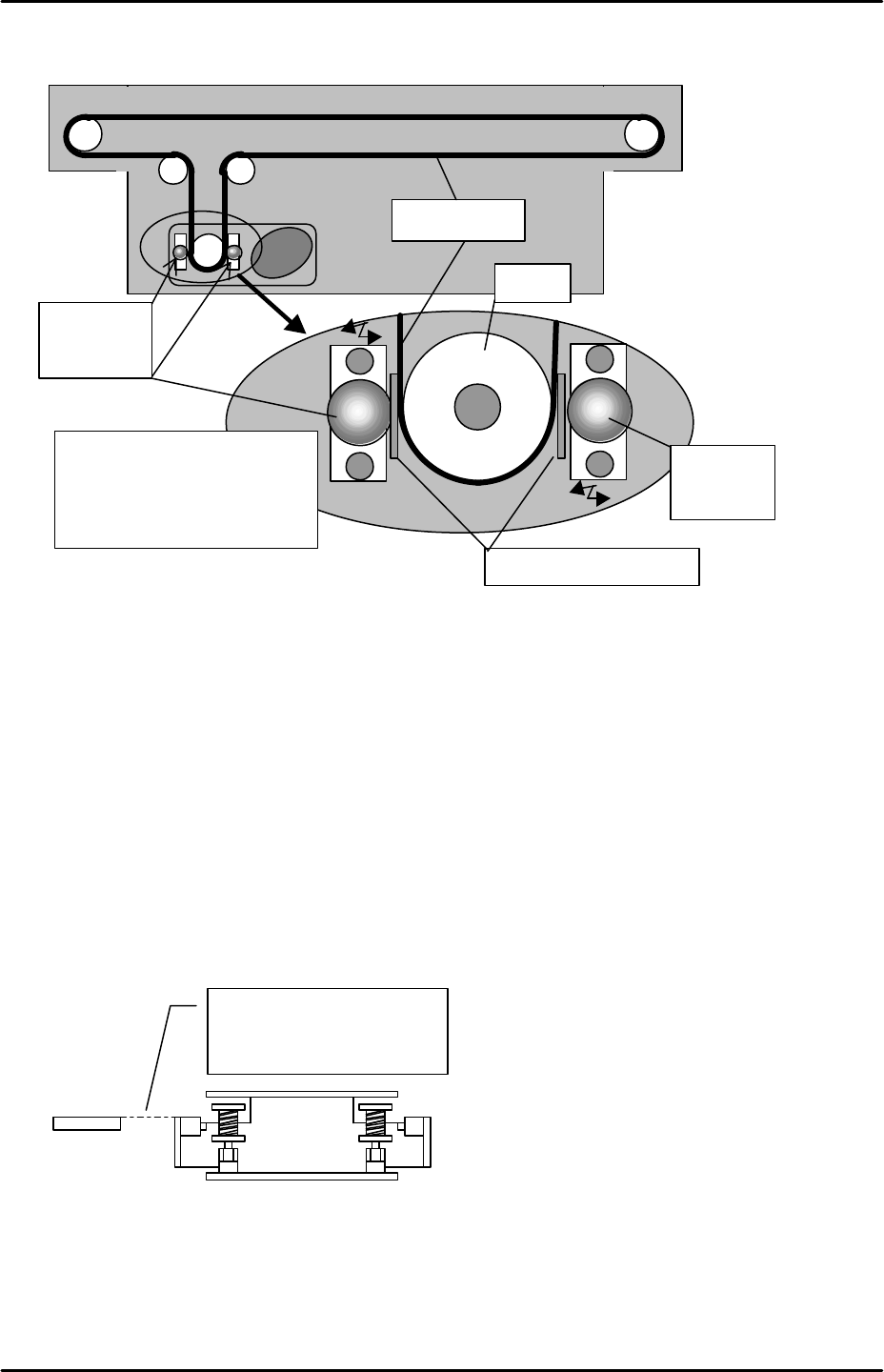 2. Insert a 0.1mm feeler gauge between the pully belt and roller. Lightly push the roller
