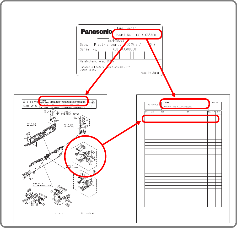 Refer to the column “PART NUMBER” in the unit list for the tape feeder that you checked in
