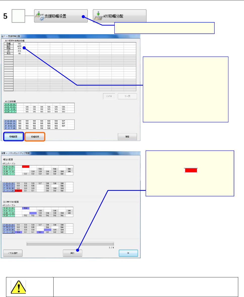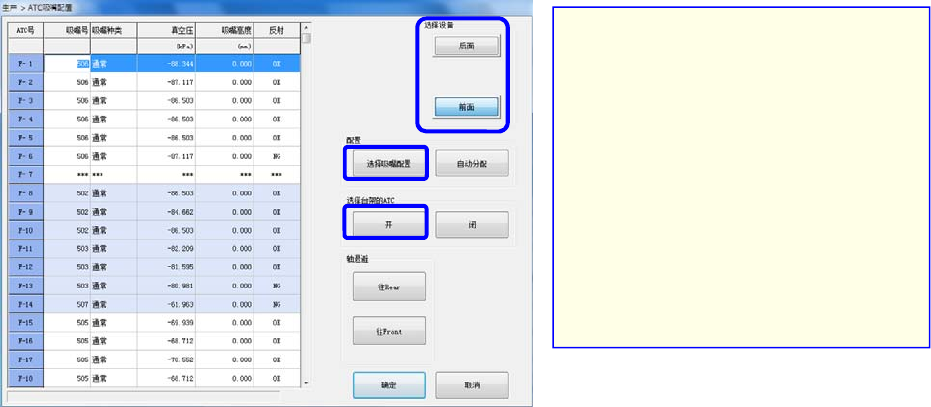 请确认在生产中要使用的吸嘴,是否安装在 ATC 单元上的规定位置,如果不一致,需要变更吸嘴的配置。