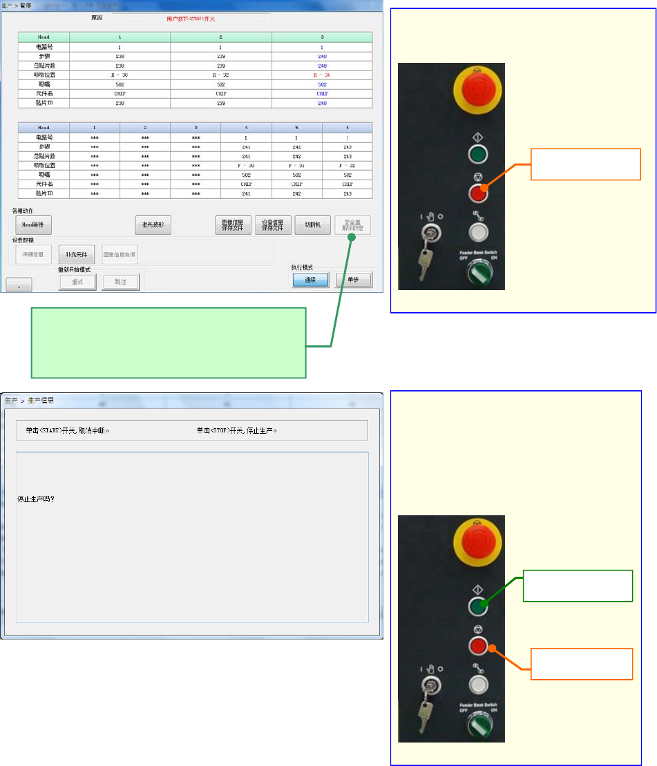 4. 生产中按[停止开关],会进入暂停