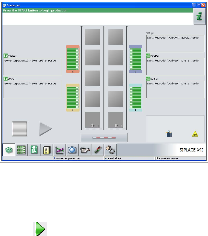 Bild 5.3 - 1 Vyn "Produktion" efter att stationsprogrammet laddats in (exemplet taget från SIPLACE X4I)