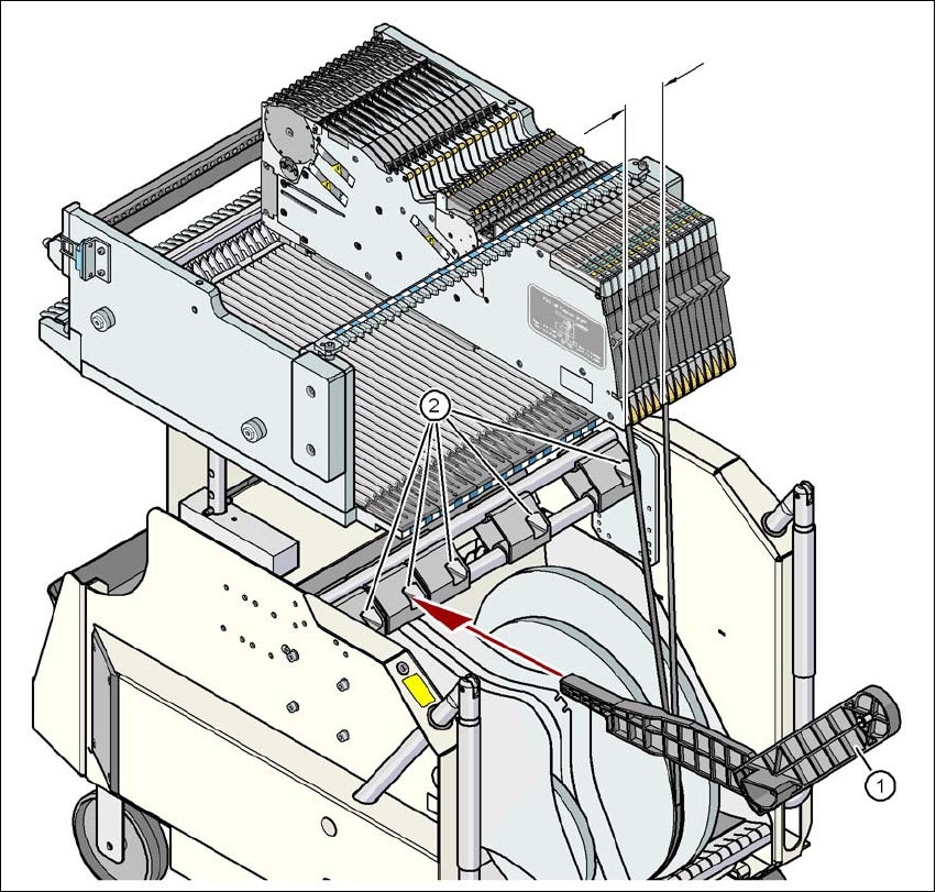 Skötselinstruktion SIPLACE X-serie Arbetsuppgifter vid maskinen Från programversion SR.70x.xx Utgåva 01/2011 Operatörskontroll runt maskin en 325 5.9.4 Hållare för yt terligare bandrull ar 5 Bild 5.9 - 2 Hållare för ytte…