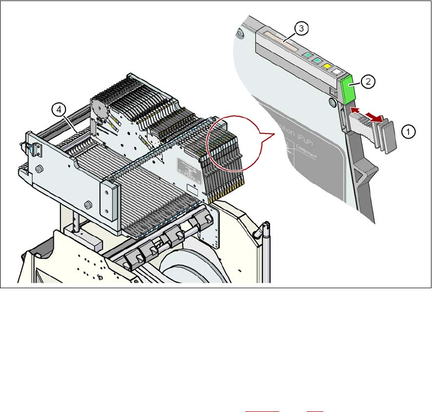 Arbetsuppgifter vid maskinen Skötse linstruktion SIPLACE X-serie Uppsättning av matarenhete r Från programversion SR.70x.xx Utgåva 01/2011 328 X-matarenheten är låst m ed en klinka på komponent bordet och kan inte dras u…