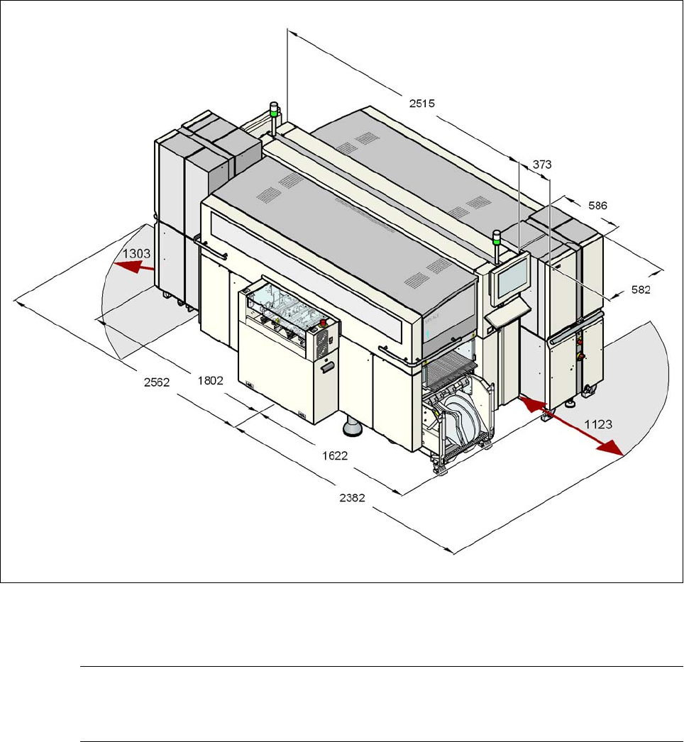 Stationstillägg Skötselinstruktion SIPLACE X-serie Matrix-Tray-växlare Från program version SR.70x.xx Utgåva 01/2011 400 6.3.5 Dimensioner på X4-auto mater med MTV 6 6 Bild 6.3 - 3 Dimensioner på X4-automaten med Matrix-…
