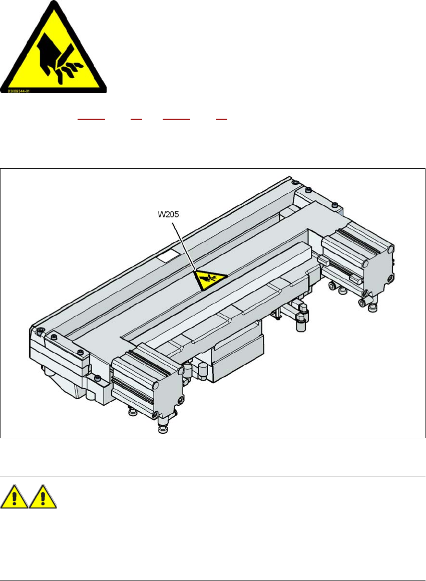 Bild 2.2 - 4 Varningsskylt W205 på ovansidan av bandkapningsaggregatet