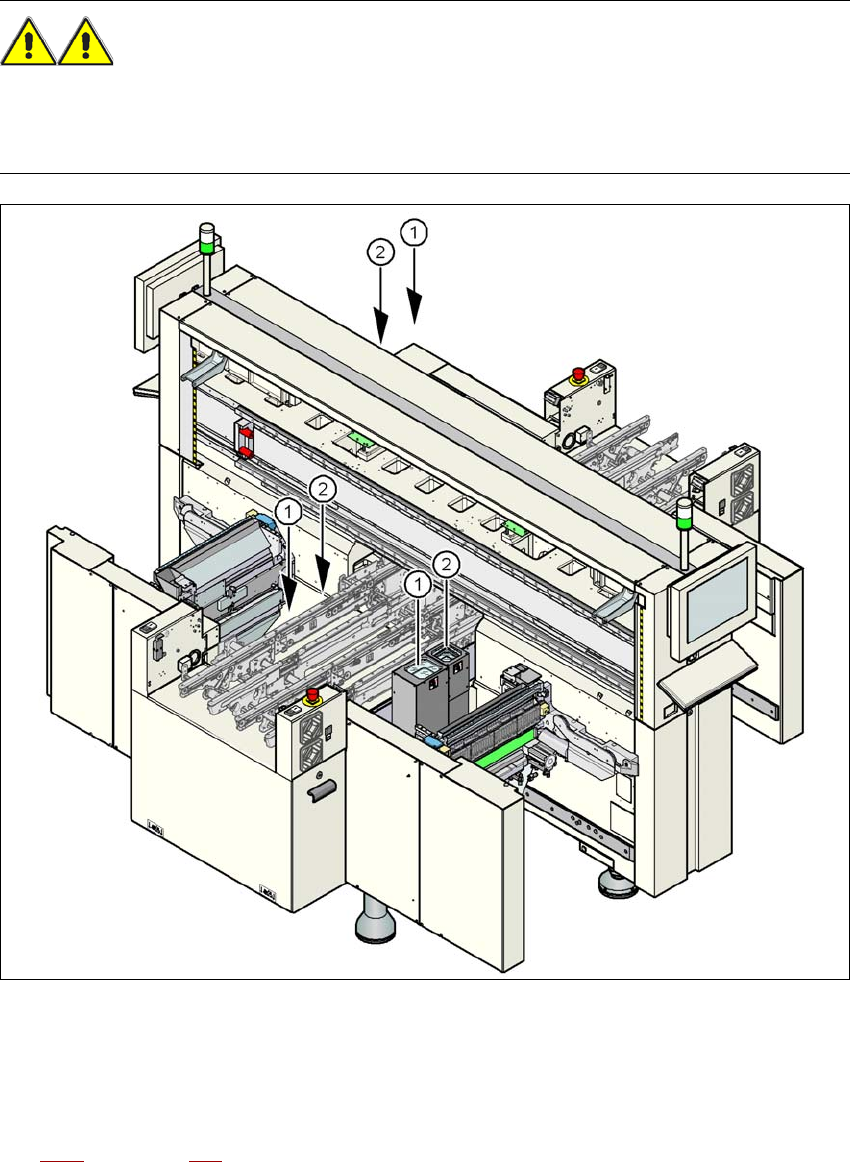 Driftsäkerhet Skötselinstruktion SIPLACE X-serie Säkerhetsföreskrifter för automatens drift Från programversion SR.70x.xx Utgåva 01/2011 68 2.5.5 Säkerhet sanvisningar om till- och fråndockning av ko mponentvagn VA R N I…