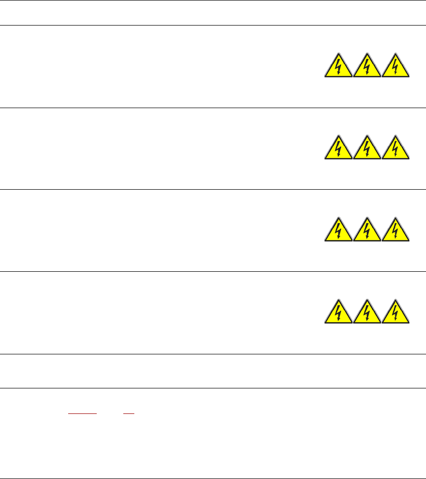 I tabellen anges spänningen för olika delsystem när huvudbrytaren slagits från och automaten