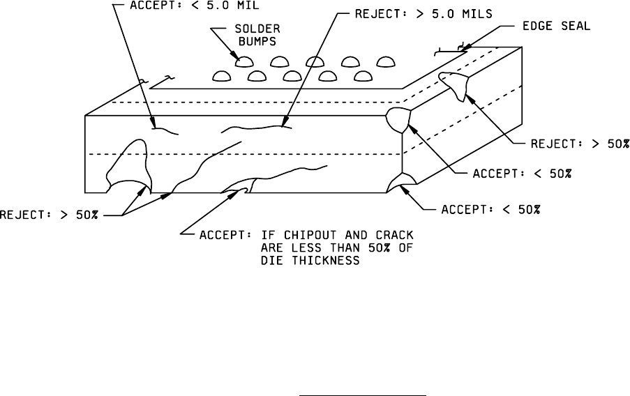 i. For flip chip, cracks, or chipouts in the substrate material that extends beyond 50 percent of substrate thickness