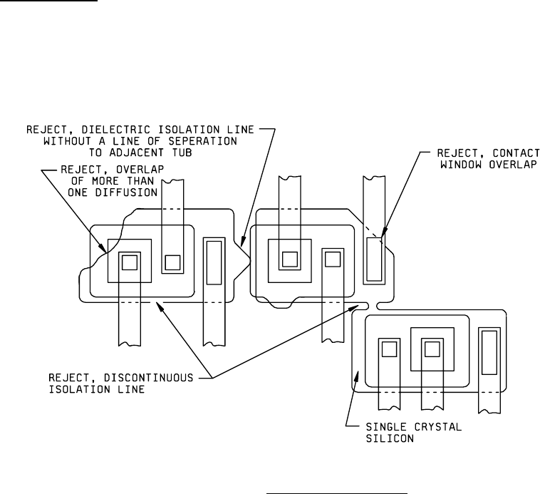 b. Absence of a continuous isolation line between any adjacent tubs, containing functional circuit elements (see